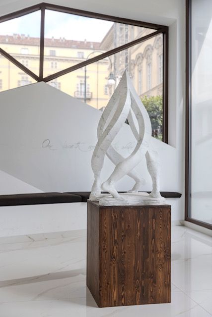 Le sculture astratte di Boussin si ispirano al mondo naturale e nascondo dall’equilibrio tra rigore e sensibilità, dando vita a creazioni che sembrano materializzare il flusso vitale. La sua poetica prende forma da alcuni volumi simbolici, come il cubo, la sfera e l’uovo. Da questi solidi l’artista esplora gli stati d’animo dell’uomo, mettendoli in rapporto con la perfezione dell’universo e traducendo in opere che trasmettono un profondo senso di serenità o inquietudine. Ne è un esempio l’opera “Toc Vajont”, in cui lo slancio verticale del marmo evita la tragedia del 1963, inducendo lo spettatore a una potente riflessione sulla fragilità e la forza della natura. Questo linguaggio è frutto del particolare linguaggio artistico di Boussin, iniziato con la formazione in restauro di monumenti storici, a Notre Dame de Paris e al Château de Versaille, e poi sbocciato lungo la Loira attraverso l’amore per il marmo, che lo ha condotto fino al cuore delle Alpi Apuane, dove tra Carrara e Pietrasanta ha fondato il suo laboratorio. Le ampie vetrate di Domus Lascaris offriranno ai passanti la possibilità di apprezzare le opere a tutte pe ore del giorno, rivelando normale linee sinuose delle sculture entrino in risonanza con l’architettura modernista del palazzo, in un dialogo costante tra interno ed esterno, tra la visione dell’artista e lo spazio abitativo. Questo è il riflesso della filosofia che anima l’impegno culturale del Gruppo Building.