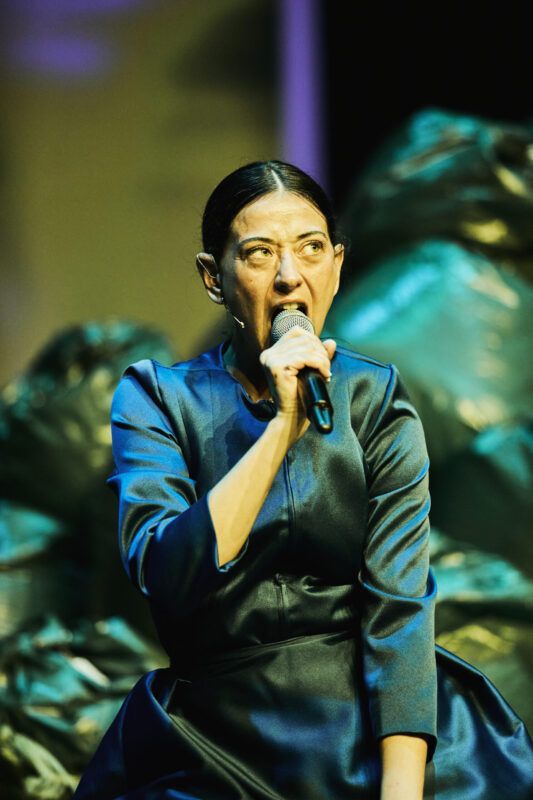 Non è certo uscito il botto – un pampampam reiterato e sonorissimo – qualche sera fa l’anniversario dei trent’anni dal cilindro del Festival delle Colline, in cui tutti speravamo. Un bel gruppo, non indifferente, di candeline spente con tante soffiate che sapevano di fiato corto e di malinconia, di un qualcosa inserito a forza, troppo. Ma ci rifaremo. Perché questo Festival dacché lo conosciamo è sempre stato un bravo ragazzo, come da canzoncina, per questo – sempre poche sere fa – siamo entrati nella platea dell’Astra con la migliore delle speranze – o delle certezze addirittura – che ci saremmo stretti intorno a quella torta con un finale e un sorriso ben diversi. Il gruppo d’apertura era Agrupaciòn Senor Serrano, la regia e la drammaturgia affidate a Àlex Serrano in coppia con Pau Palacios, il testo ad una volenterosa Anna Pérez Moyan che se ne arriva, in canottiera e pantaloni, su un palcoscenico che sta “a metà strada tra un laboratorio e una discarica” (ci era stato detto), un paio di mucchi di sacchi d’immondizia belli gonfi da cui sempre la volenterosa “trova oggetti, resti e rifiuti generati dalla Storia dell’amore che la aiutano ad attivare la trama.”