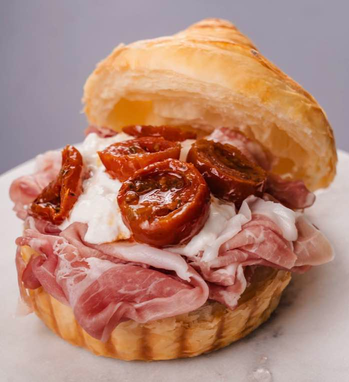 “In tanti ci chiedevano qualcosa di salato già dalle prime ore del mattino – spiega il maestro Fabrizio Galla – volevamo rispondere con la nostra impronta, senza snaturare il linguaggio della nostra pasticceria. Abbiamo lavorato per mesi sulle basi, perché volevamo che ogni boccone raccontasse la stessa cura che mettiamo nei dolci. È un’idea per ampliare l’esperienza mattutina in pasticceria, offrendo alternative sfiziose e leggere che combinassero l’eleganza della sfoglia e delle focaccia artigianali con ingredienti freschi e selezionati. Tra le novità figurano i croissant con salmone, avocado e songino, grande classico della colazione francese che diventa un piatto gourmet burroso e fragrante; segue la focaccia croccante con semi di girasole e mais con salame di Varzì e olive taggiasche, un incontro tra rusticità e morbidezza, arricchito dal profumo del salame di Varzì e dalla sapidità elegante delle olive taggiasche, con aggiunta di fichi. La carta offre anche il toast aperto, una focaccina croccante con semi di girasole e mais, fontina filante, prosciutto cotto e grani di senape, dal gusto deciso. Da provare anche il panino sfogliato con prosciutto crudo, burrata e pomodorini confit, dove la sfoglia fragrante abbraccia la cremosità della burrata e la dolcezza dei pomodorini confit, con la nota sapida del prosciutto crudo e la dolcezza della mela cotta al forno.