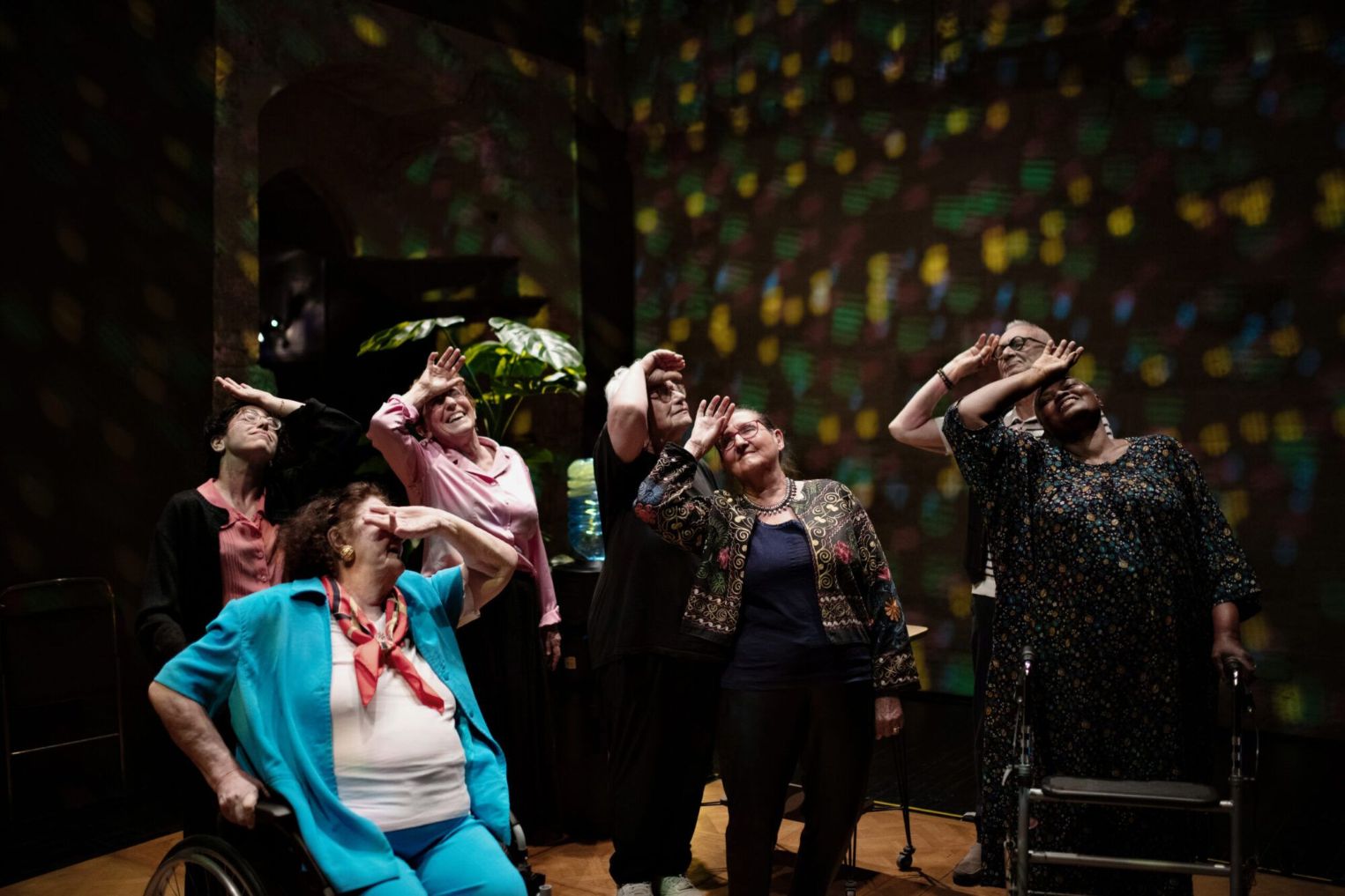 Bien sympa!, potrebbe essere il giudizio da dare a “La vie secrète des vieux” visto al Festival delle Colline, una fitta coproduzione tra tante realtà teatrali, a cominciare dal Festival d’Autumne di Parigi o dal Théâtre National Wallonie di Bruxelles, dal Festival d’Avignon o dalla Comédie de Genève, una sorta di Villa Arzilla dove un gruppetto sempre meno fitto di orgogliosi vegliardi si mette a informare un pubblico – alla fine divertitissimo – delle proprie ancora prodezze sessuali. Dico “meno fitto” dal momento che da una precedente distribuzione si contavano, “in ordine di longevità” capace di superare il secolo, ben tredici rappresentanti mentre l’altra sera, sul vasto palcoscenico dell’Astra, sgambettavano soltanto più in sei, qualcuno sicuramente perso per la strada, con conseguente differenza di durata dello spettacolo, una visibile su un piccolo schermo, ex annunciatrice di una qualche tivù, un paio, Anna e Georges, deceduti negli ultimissimi anni, i compagni pronti di lui a mettere in bella mostra l’urna delle ceneri perché sia ancora lì a prendere parte in qualche modo allo spettacolo.