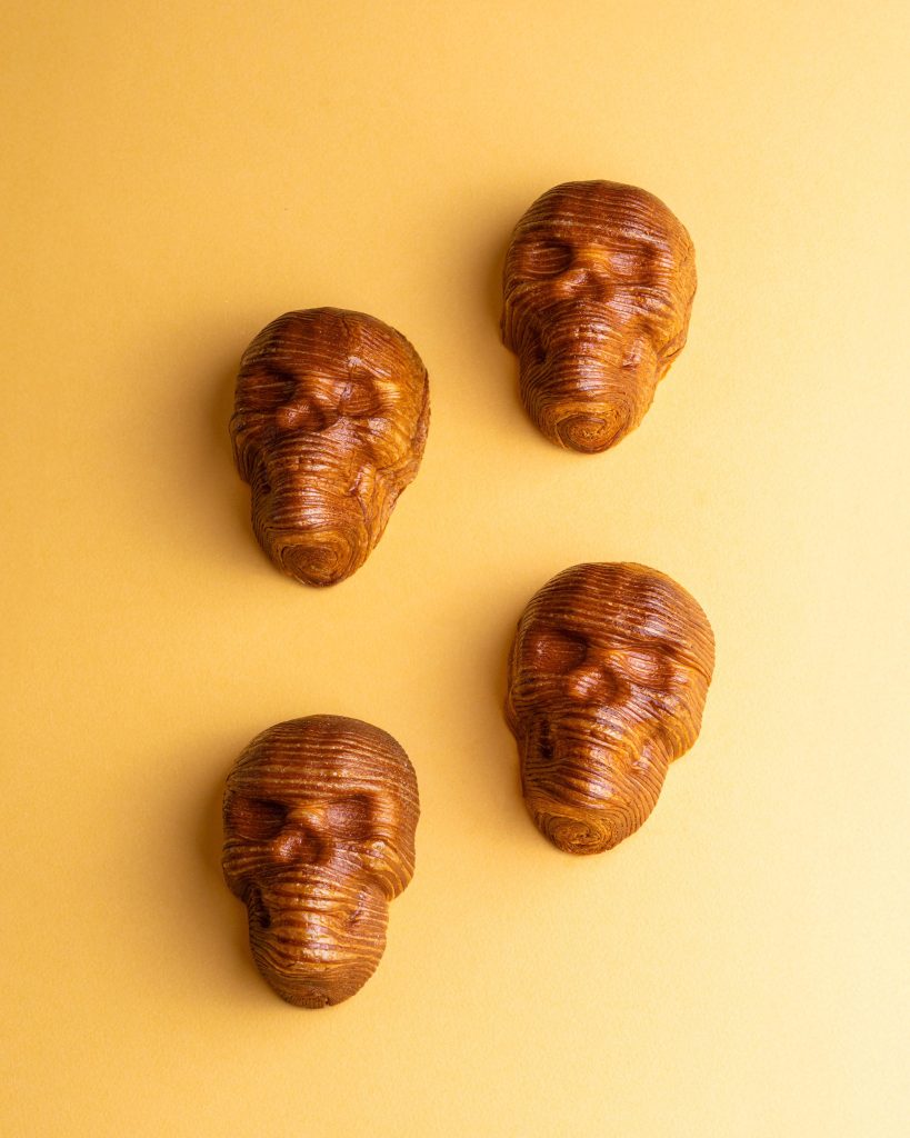 Tra le più interessanti figurano quelle di tre eccellenze piemontesi. Il Teschio Croissant dei Pastry Chef Maicol Vitellozzi e Francesca Corbo è sicuramente una delle più originali. Questo dolce, disponibile in edizione limitata dal 30 ottobre al 2 novembre, è la reinterpretazione in chiave dark dell’iconica viennoiserie. Un connubio di sapori perfettamente equilibrato tra la croccantezza dell’impasto e la delicata bontà del suo squisito ripieno di chantilly al mascarpone e confettura di lampone. Un’armonia di gusto che sorprende e delizia.