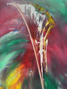 Questa, come altre opere presentate, sono stati d’animo, sincerità espresse, amare riflessioni, partecipazione e presa di coscienza agli sconvolgimento che l’uomo ha prodotto e continua a produrre. Sono messaggi, immersi altresì nel colore, a voler identificare la debolezza e la forza che vivono nel mondo, le disequità e i soprusi, le violenze, a voler esprimere il gran carico di sensibilità, di emozioni, di denuncia: colpisce “La linea sottile tra Bene e Male” (acrilico, 2022), un rosso e un blu che non avranno mai modo d’incontrarsi e di fondersi, due separazioni nette e invalicabili, manichee, colpisce la “Rabbia” (un acrilico del 2019) dove forse un sole, fisso in un cielo opaco, riesce a illuminare una natura e un mare che è ancora attraversato da onde alte e minacciose, colpisce “Divisione”, un misto di acrilico e stucco del 2022, dove prevalgono le tinte chiare, forse la ripresa aerea di un mare di sghembo e di una spiaggia che è deserto, dove la presenza umana non è concepita. Mentre l’uomo, la donna, potevano apparire in opere precedenti, oggi l’essere umano non è concepito, tutto diventa umanamente brullo, ogni forma di vita cancellata, la distruzione è dietro l’angolo della vita di ognuno. Anche i colori (se pur Monia Malinpensa, che ha curato la mostra “Raccontare e raccontarsi”, parla di “consistenza, che si diffonde nell’opera con una gestualità molto personale e con una vibrante atmosfera rarefatta”, di “notevole stesura”) si sono quasi del tutto affievoliti, rimangono dei bluastri, s’affaccia qualche rosso, ma le espressioni di un precedente mondo surrealista non trovano più spazio.
