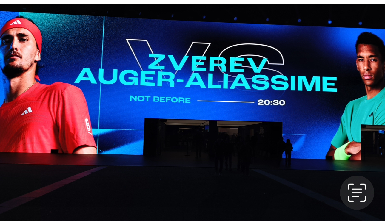 Ho quattro ore davanti a me e mi dicono che la partita in programma é Auger-Aliassime contro Zeverev, quarto di finale delle Atp Finals. Passo quattro filtri di controllo all’entrata per la sicurezza, di questi tempi non si sa mai. Gente da ogni parte del mondo. Un via vai continuo e dopo una gimcana tra la folla, riesco a trovare il mio posto a sedere. Tribuna laterale lato corto del campo. Si vedono bene i colpi e i giocatori.Inizia il programma con il doppio.