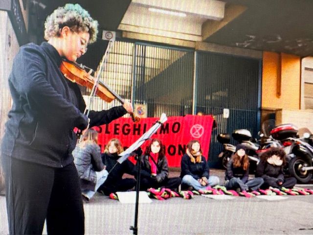 Questa mattina Extinction Rebellion ha occupato l’ingresso della Rai di Via Verdi a Torino, dove una decina di donne si sono legate tra loro con corde rosa, verdi e nere e si sono coperte la bocca con scotch nero, mentre è stato esposto uno striscione “Sleghiamo l’informazione”. Nella giornata mondiale per l’eliminazione della violenza contro le donne, il movimento denuncia “la narrazione distorta che i media, e in particolare la principale emittente pubblica italiana, portano avanti su femminicidi ed ecocidi, e chiedono maggiore libertà di stampa e una narrazione che dia voce alle vittime”.