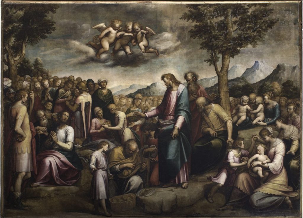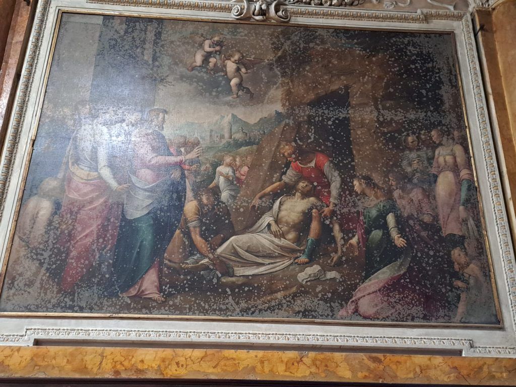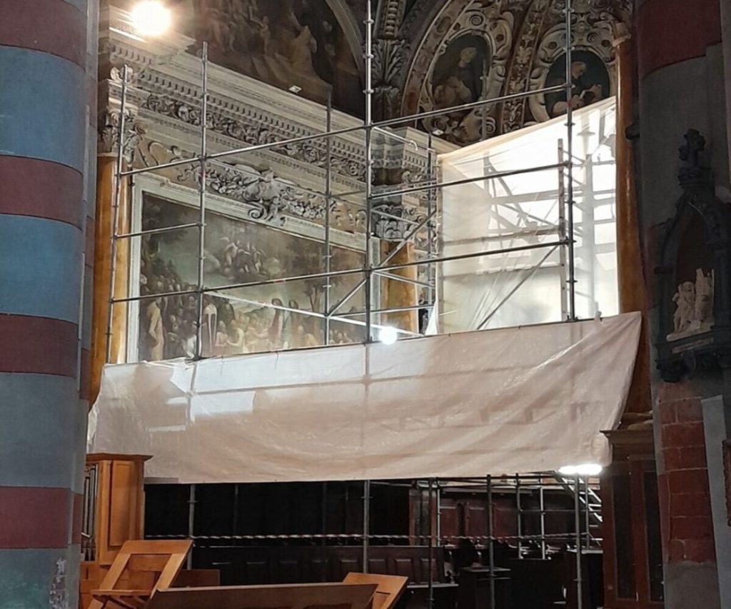 nelle foto, la Resurrezione di Lazzaro, il ponteggio in chiesa e la Moltiplicazione dei pani e dei pesci