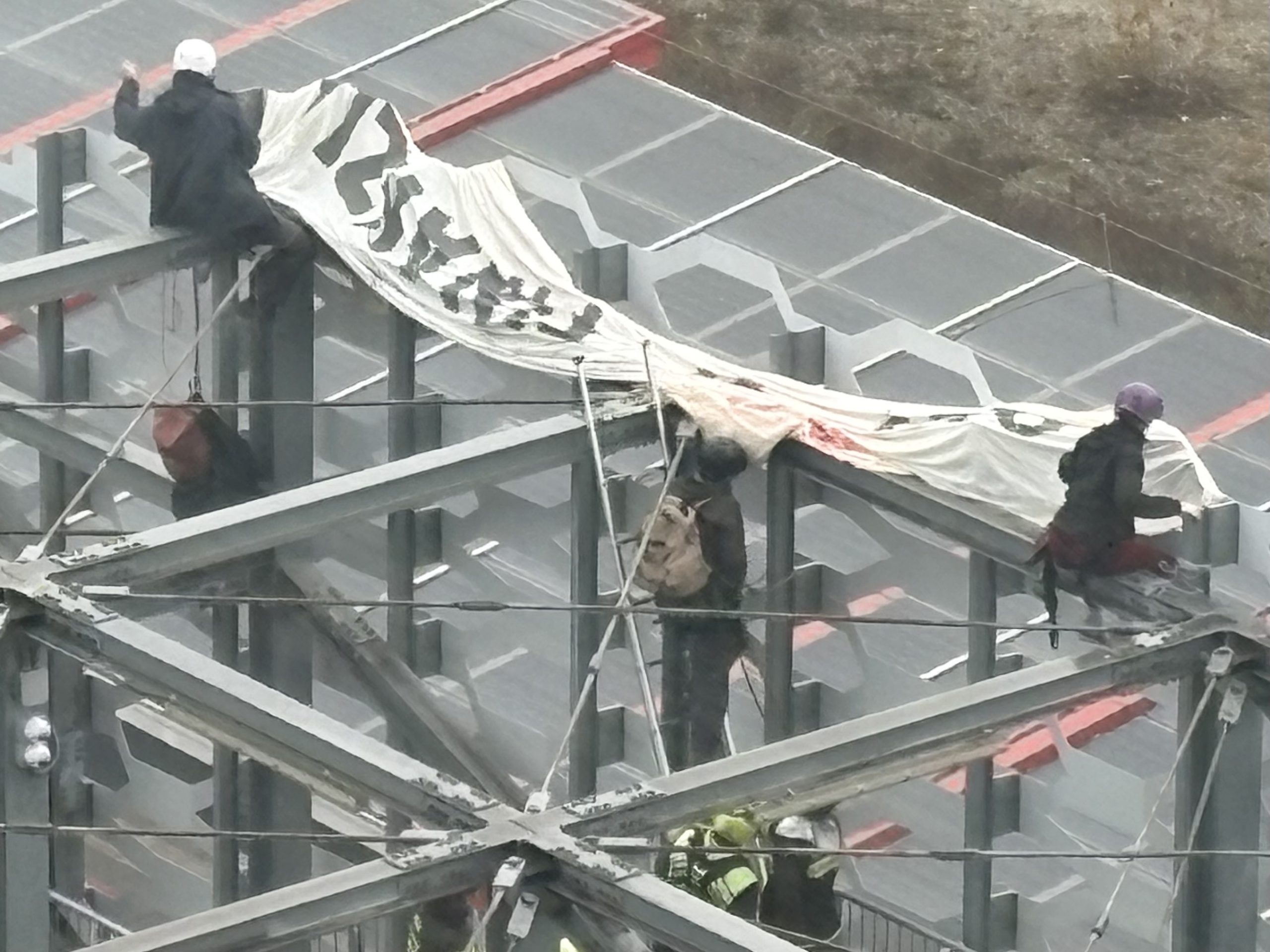Questa mattina, a Torino,  Extinction Rebellion ha bloccato l’ingresso dell’Aerospace and Defence Meeting all’Oval Lingotto. Una trentina di persone si sono incatenate ai cancelli, mentre in tre sono riuscite ad arrampicarsi su una struttura del palazzo della Regione Piemonte.