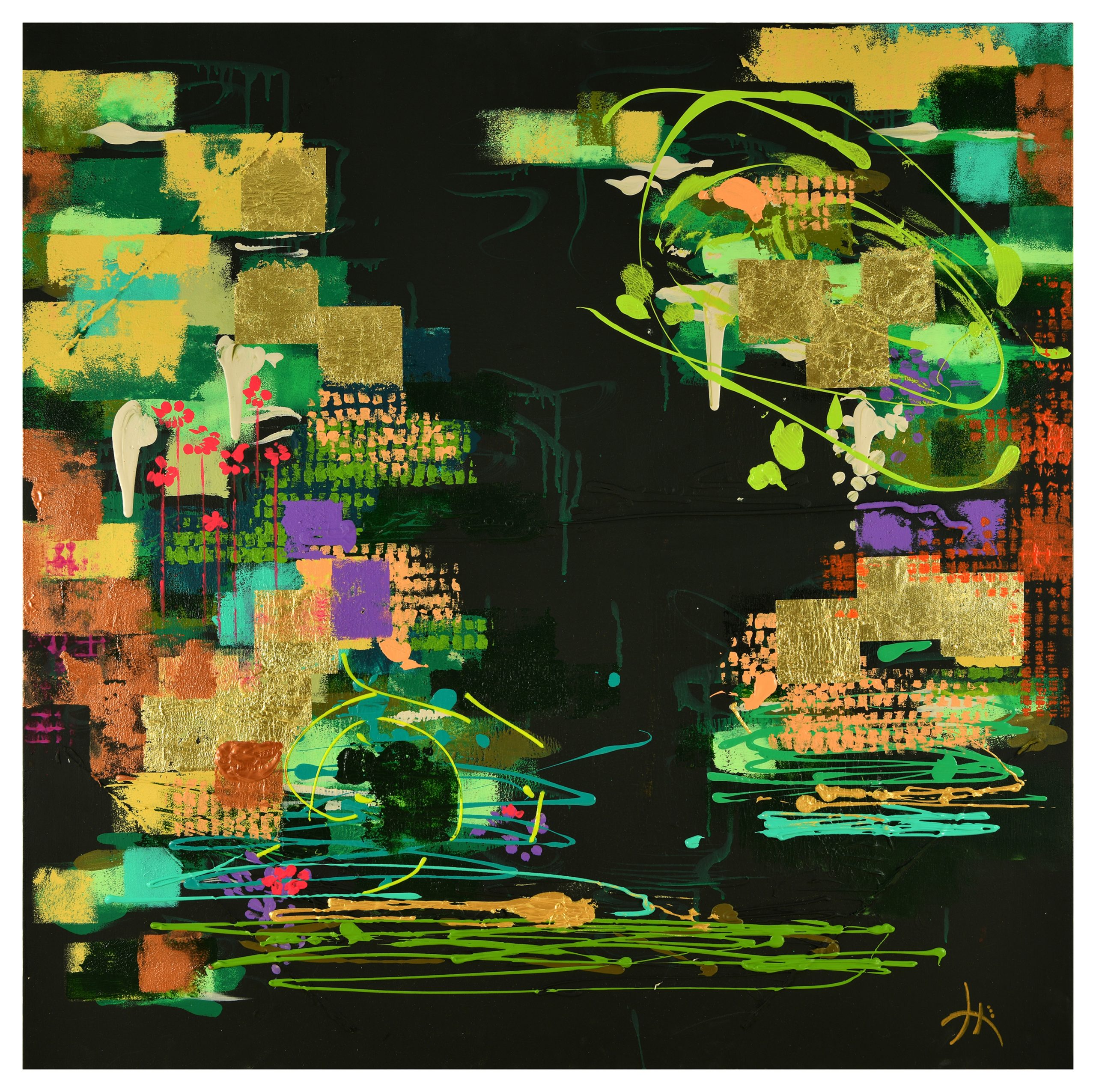 È la raffinatezza coloristica a colpire soprattutto nei lavori della pittrice, c’è un’eleganza non discosta da una bella vivacità che si espande, altresì nei tratti simbolici posti in aree concettuali, nella sensazioni emozionali che ne nascono. Le sono sufficienti piccoli tratti di colore in rapida successione verticale per creare, ancora su un supporto di lino, un delicato affresco di “Bouganville”, i rossi gli azzurri i verdi acidi usati a illuminare i bianchi che intervallano sempre accompagnati da queste strisce dorate che fanno da contraltare alla “semplicità” dell’opera. Sono suggestioni, è musicalità, è da parte di chi guarda un immaginare continuo, al di là del vero e proprio progetto, dello stesso titolo, della poesia innegabilmente presente, dell’intensità che l’artista pone nella sua natura, espressa in differenti modi (ancora una composizione che colpisce, “Green”, del ’22, pressoché un quadrato di colori che sembrano abbracciarsi, vivificati da alcuni deboli fiori rassastri che tentano timidamente una nascita). È un ambito di rivelazioni, di espressioni convincenti, quelle che prendono origine dall’uso preciso e forte della materia, quelle a cui Fulvia Steardo dà vita.