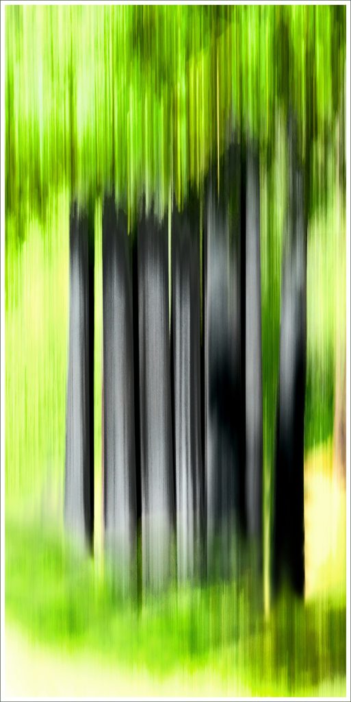 Di natura ci parla anche Gianalberto Righetti – ingegnere e fotografo genovese, dagli anni Novanta espone le sue opere in varie gallerie d’arte contemporanea, opere “di razionalità e logica tipiche di un ingegnere. laddove Righetti “fotografa esponendo per le luci, ottenendo immagini sottoesposte e con colori saturi, grazie anche al frequente uso del filtro polarizzatore” -, sotto altra forma, attraverso la fotografia coniugata sotto sguardi diversi. Attraverso una “foglia” (2020), quasi rinsecchita nei suoi colori autunnali, imprigionata tra due robuste colonne, attraverso l’immagine lattiginosa di un angolo di deserto in Namibia, “Presenza invisibile 8” del 2023, attraverso il tronco contorto e spigoloso di un albero (“Frammenti ricomposti 6”), colto lo scorso anno nella campagna della ligure Bogliasco. Estetismi che non sono superflui esercizi di tecnica, quelli di Righetti, quelli che guardano e coniugano l’essenza e la concretezza allo stesso tempo dell’”albero”, che rimane il protagonista di questo spazio di galleria dedicato all’autore: davanti a ogni opera ci imbattiamo in un risultato profondo, nella trasformazione del “linguaggio visivo in un’esperienza naturalistica” (scrive Malinpensa nella sua presentazione), nel ritrovarci spinti a sentirci far parte, inglobati nel soggetto che abbiamo davanti a noi. Quella di Righetti è poi una natura non statica ma in movimento, parte di un ambiente che vive e che respira, Righetti vivendola dall’interno pare giocarci insieme: “Frammenti Ricomposti 4” nel suo incessante sfuggire verticale, come uno specchio deformato, ne è la prova, come i chiaroscuri, rubati alle Cinqueterre, di “Presenza invisibile 1” (un’opera del 2008), come quelle immagini che sembrano quasi soltanto impressioni e accenni, riprese dai panorami di States del nord americano, come tutto quanto emblematicamente diventa macchia, rossastra o verde, nelle tante ricercate tonalità, tra le campagne di Chaumont, soltanto pochi mesi fa. Opere che sono respiro, immersioni, lirismi, coloriture, “poesie visive”, ragnatela di accordi e di rapporti a mano a mano più stretti e compatti, dove la presenza umana è saggiamente bandita.