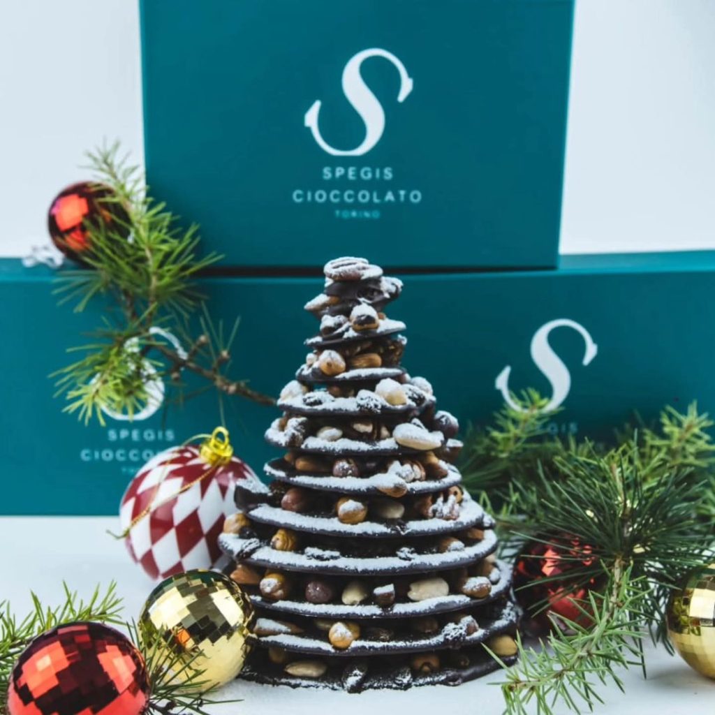 Un magnifico e delizioso albero di Natale di cioccolato è la proposta del Maestro cioccolatiere Alessandro Spegis. Originalissimo come centrotavola natalizio, si rivela perfetto quale dessert al termine del pranzo. L’albero in cioccolato fondente 62% e frutta secca – noci, mandorle, nocciole, fichi, e uvetta sultanina – è facilmente divisibile nei suoi strati per la gioiosa condivisione con parenti e amici.