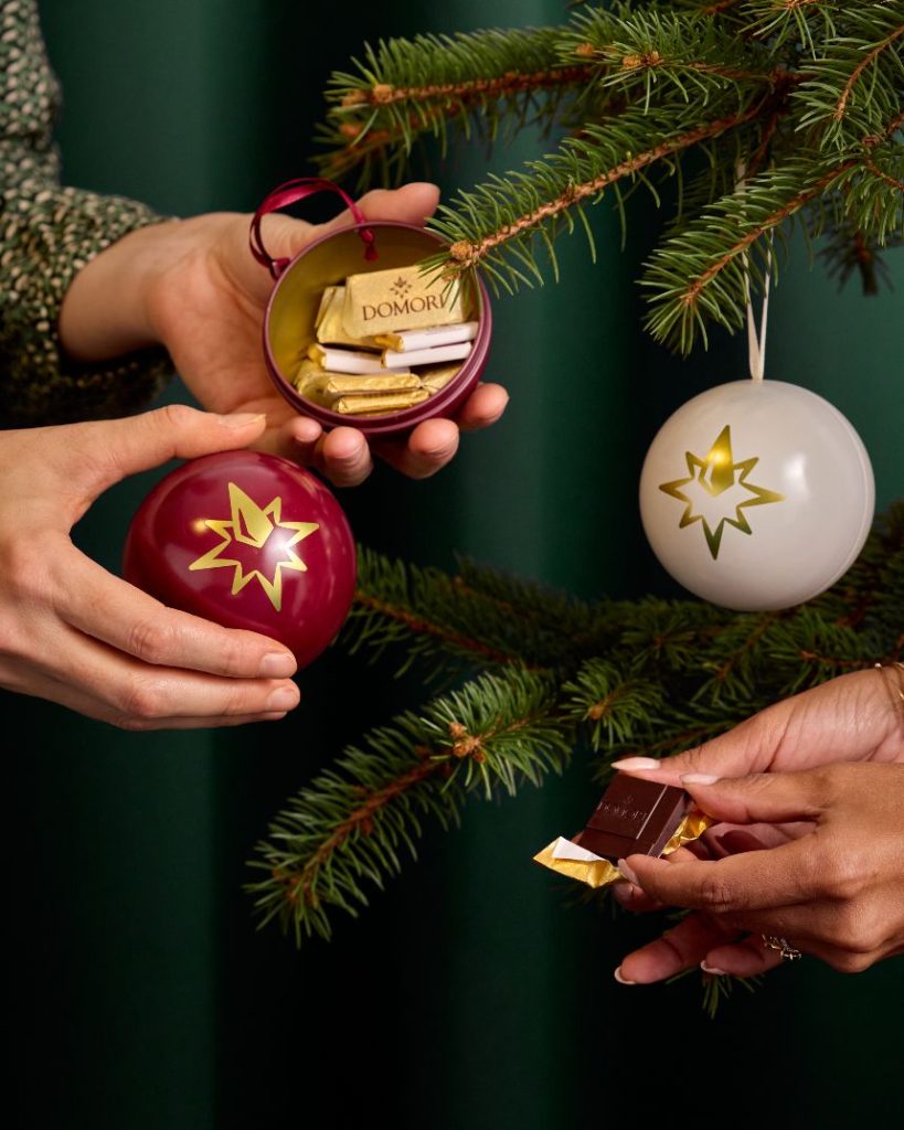Cioccolata d’eccellenza è la deliziosa sorpresa di una delle proposte firmate Domori: le palline di Natale. Novità della collezione regali 2025, le palline di Natale sono disponibili in due bellissime tonalità natalizie, bordeaux ed avorio. Al loro interno, un assortimento misto di gianduiotti e napolitains. Perfette come piccolo ma goloso pensiero e come decorazione per l’albero.