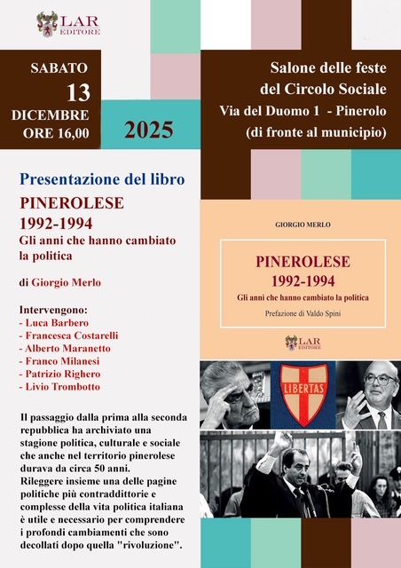 Sabato 13 dicembre la presentazione del libro di Giorgio Merlo