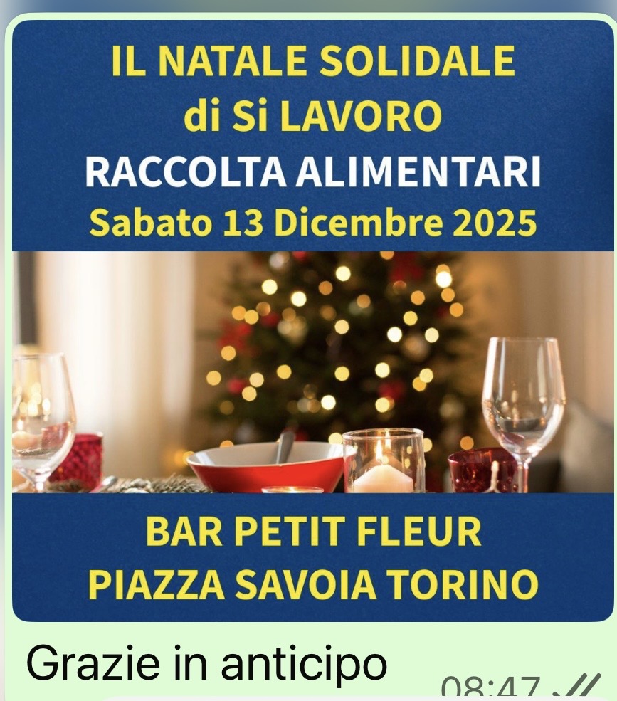 Oggi, sabato 13 dicembre, dalle 10 alle 16.30 raccolta generi alimentari in piazza Savoia nel grande dehors del Caffè Petit Fleur . I generi alimentari raccolti verranno consegnati alle famiglie bisognose della Caritas e alla Mensa dei poveri.