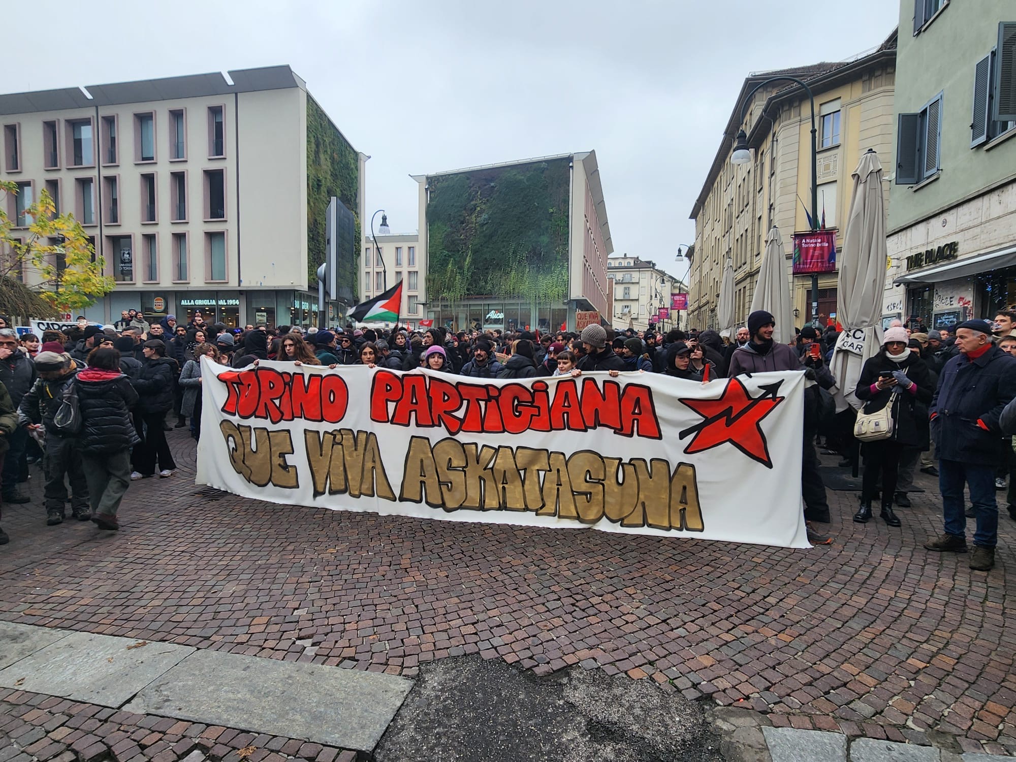 Manifestanti in piazza per Askatasuna, Torino blindata