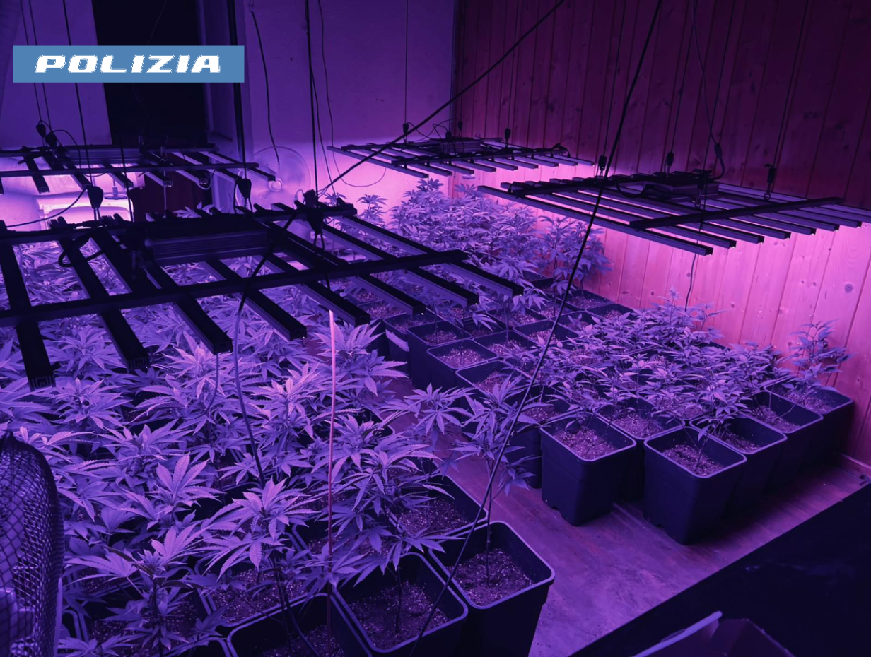 In particolare, una delle attività è avvenuta a Bussoleno (TO), dove le donne e gli uomini della Questura di Torino hanno arrestato un cittadino italiano di 32 anni che aveva adibito una parte della sua abitazione a serra indoor professionale con tubi di areazione, ventilatori, sistema di irrigazione automatizzato, centralina per la regolazione della temperatura e dell’umidità oltre a un impianto di illuminazione per accelerare l’accrescimento delle piante.