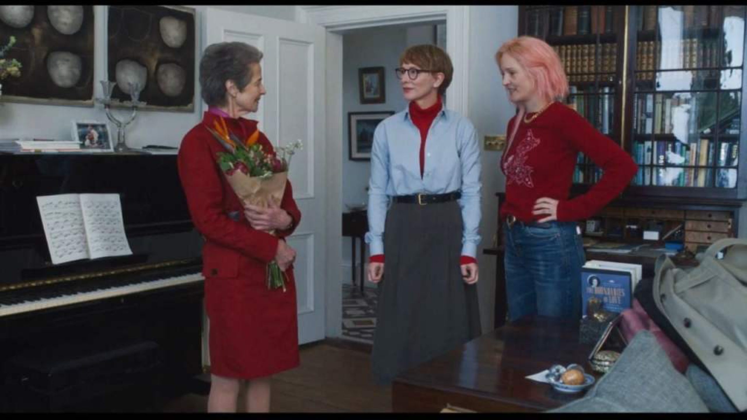 “Tutte le famiglie felici si somigliano; ogni famiglia infelice è invece infelice a modo suo”, avrebbe detto l’autore di “Anna Karenina” ma forse per Jarmush non è vero. O per lo meno, è quel che ci pare d’avvertire. Ancora strade, ancora auto (attraverso i quartieri come in fotocopia di Dublino) che, questa volta separatamente, conducono le due sorelle Vicky Krieps e Cate Blanchett da una madre scrittrice con parecchi libri all’attivo, gelidamente ospite (Charlotte Rampling) che non ama si parli di quelli per il loro incontro annuale, casa ordinata, un giardino ordinato e verdissimo, un anonimato e un panorama solitario interrotto soltanto da qualcuno che passa con il suo cane al guinzaglio, ti trovo bene, sorrisi, bacetti, ci vogliamo mettere a tavola?, qualche imbarazzo, fotografie a rispolverare un’infanzia, il tè servito nel servizio più bello, il vaso con i fiori che sono un regalo di Timothea/Blanchett che va tolto perché impedisce di vedersi in faccia e sostituito, tre esistenze che non si toccano, un assurdo appuntamento, un cellulare tenuto sul tavolo per affari pressanti, ecco ho finito!, l’attesa di una macchina che verrà a riprendere la figlia dai capelli rosa, mancano ancora tre minuti, i saluti composti e un arrivederci al prossimo tè.