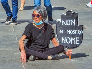 Dicono gli organizzatori: “Per ‘AGiTe’ essere sempre tutti i sabati, con ogni condizione di tempo, sulla stessa piazza, sugli stessi sanpietrini, con le stesse bandiere, con le scritte e l’alternanza di ospiti è un monito all’indifferenza, alla profonda volontà d’impegno di fronte alla catastrofe della guerra”. “E più la situazione internazionale – continuano – diventa infuocata, più prendono senso e significato i nostri ‘Sabati di Pace’, smentendo coloro per cui è una perdita di tempo ed è inutile sperare di modificare i giochi di potere. La nostra, lo sappiamo bene, è una piccola realtà che va però sommata ad altre, tante, piccole iniziative sparse in tutta Italia e tese ad esprimere, come facciamo noi, idee convergenti sul totale ‘rifiuto della guerra’”.
