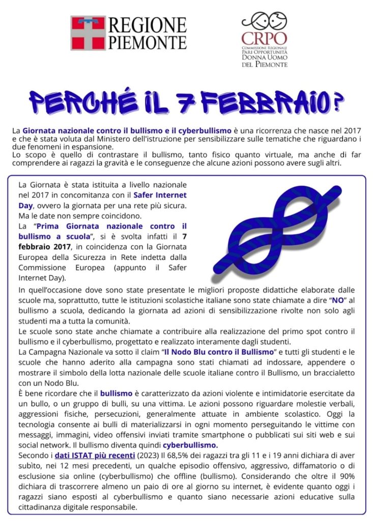 In occasione della Giornata Nazionale contro il Bullismo e il Cyberbullismo, che si celebra oggi, la Commissione Regionale per le Pari Opportunità desidera richiamare l’attenzione su due fenomeni che continuano a colpire molti giovani nel nostro territorio.