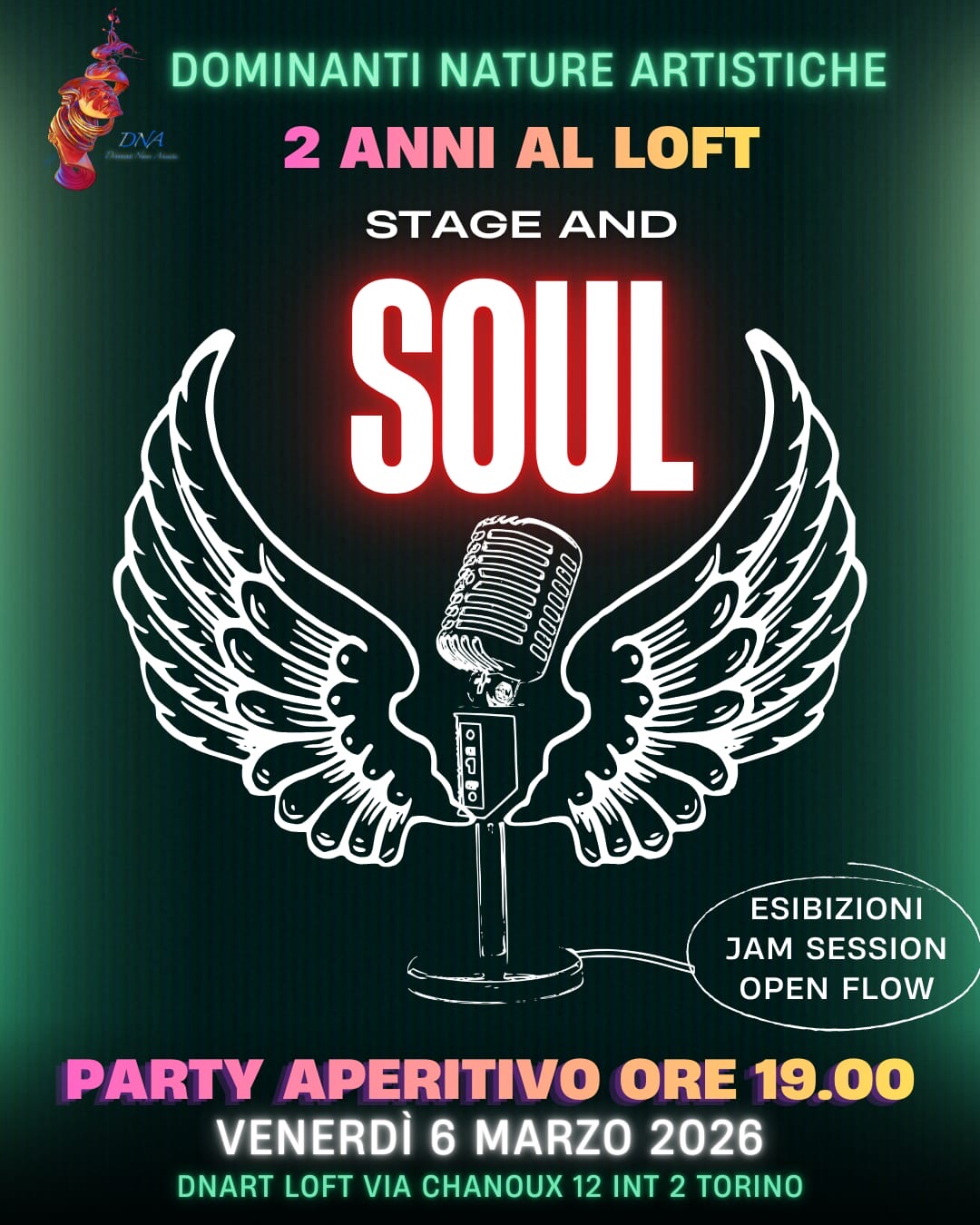 La serata, dal titolo “2 anni al Loft, Stage and Soul”, sarà un party aperitivo pensato come spazio aperto alla creatività. Protagonista dell’evento la Jam Session “Open Flow”: un palco libero, senza scalette prestabilite, dove musicisti, attori, poeti e performer potranno alternarsi in un clima di condivisione e contaminazione artistica.