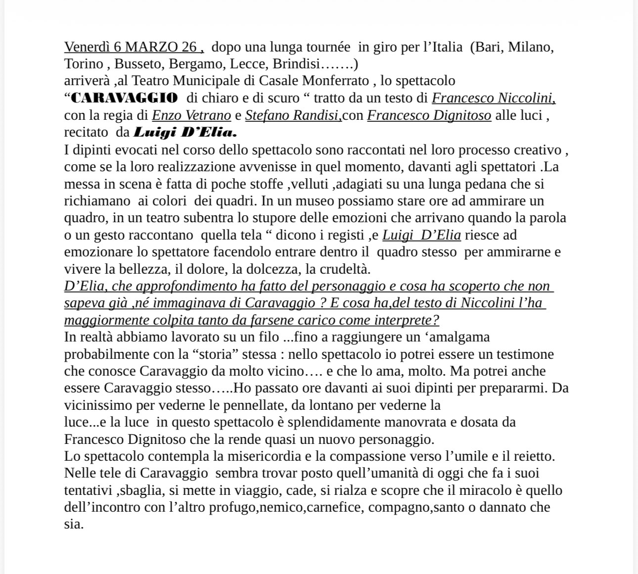 In scena venerdì 6 marzo