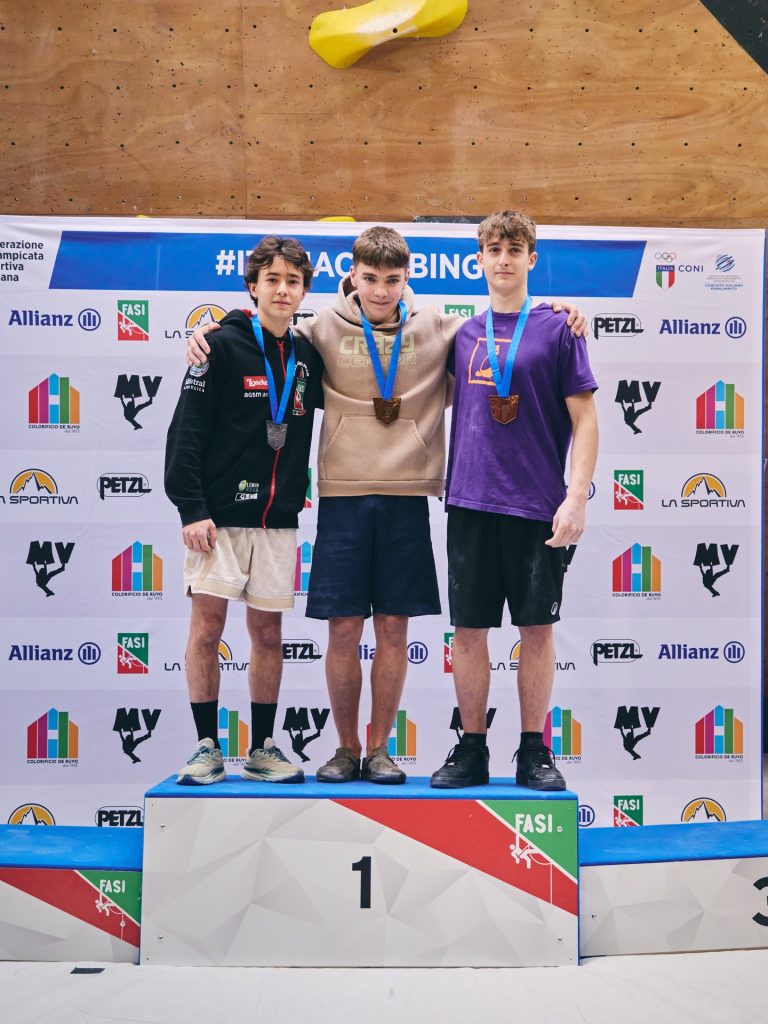 Finali: talento e personalità sui blocchi decisivi Le finali hanno confermato il livello tecnico e la maturità agonistica dei giovani atleti. U17 Femminile Dopo il terzo posto in qualifica, Giorgia Zanetti ha ribaltato la classifica e ha conquistato l’oro con 59,5 punti. Argento per la genovese Maddalena Faragona (Sisport SSD) e bronzo per la bolognese Elisa D’Addario (Gollum Climbing Academy). U17 Maschile Anche in finale è proseguito il testa a testa tra i protagonisti delle qualifiche, che si è concluso con l’oro di Emiliano Zingrini, l’argento di Pietro Franzoni e il bronzo di Leonardo Donola. U15 Femminile Matilde Zanardi ha confermato l’ottima prova di qualifica e ha conquistato l’oro con 4 top. Secondo gradino del podio per Eva Luna Grella e terzo posto di bronzo per la bresciana Beatrice Bonardi (Mad Climbers). U15 Maschile Matteo Franchi, primo anche in qualifica, ha dominato la finale con 4 top, di cui 3 flash. Seconda piazza per il napoletano Carlo De Cristofaro (Star Wall Climbing Roma) e terza per Mattia Dongiovanni.