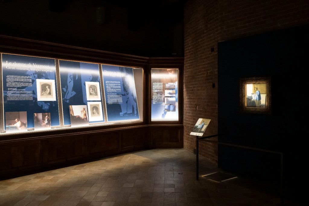 “L’esposizione – annotano i curatori – propone una lettura di Vermeer e della sua opera non solo come ‘maestro della luce’ e degli ‘interni domestici’, ma come autore di una autentica ‘pittura mentale’, il cui fulcro visivo è la ‘macchia azzurra’ dell’abito della giovane, che domina l’intera composizione con una forza silenziosa e magnetica”. “Il blu – proseguono – non è un semplice elemento cromatico, ma un vero campo di energia visiva … ottenuto attraverso l’utilizzo di un pigmento raro e prezioso, il ‘lapislazzuli’, importato attraverso le grandi rotte commerciali che collegavano l’Europa all’Asia”. Concepito, al di là della semplice lettura estetica, come occasione preziosa di studio ed approfondimento, l’allestimento del dipinto è accompagnato da pannelli tematici dedicati nello specifico alla conoscenza della “pittura olandese” e a quella sua certosina capacità di rappresentare il “reale”, arrivando finanche all’uso della “camera obscura” che permetteva a Vermeer (e a molti altri artisti fiamminghi come Van Eyck o, in epoca barocca, allo stesso Caravaggio e a Velàzquez) una sorprendente precisione “fotografica” e fisiognomica, accanto ad alcuni effetti “fuori fuoco”, tipici proprio della moderna “tecnica fotografica”.