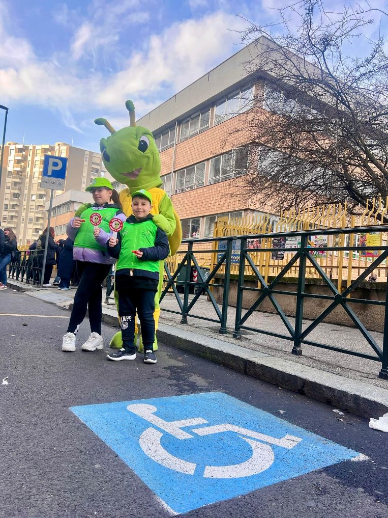 Protagonisti dell’iniziativa sono stati proprio gli alunni della scuola primaria, in particolare Carlo e Greta di 9 anni, che sono scesi in strada davanti alla scuola per presidiare simbolicamente i parcheggi riservati e richiamare l’attenzione sul rispetto delle regole e dei diritti delle persone con disabilità.