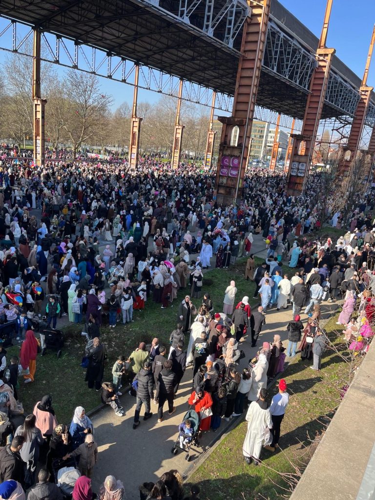 Torino. Una festa che é durata meno di mezz’ora. Il tempo di una preghiera rivolti verso La Mecca. La comunità musulmana ha così festeggiato Eid Al Fitr, la fine del Ramadan che rappresenta il mese sacro. Finita la preghiera ci sono state foto con amici e parenti chiacchiere e risate per circa ventimila fedeli.