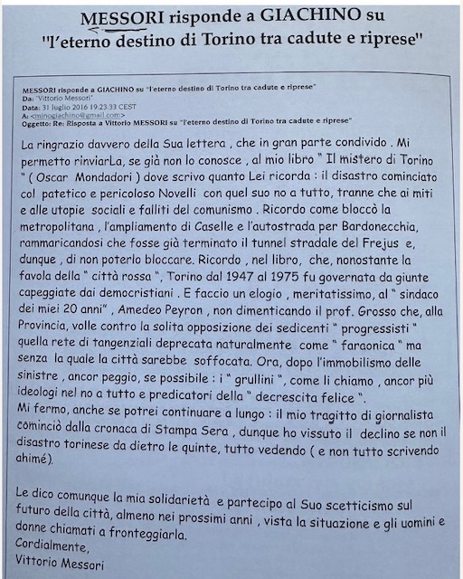 Quando Messori rispose a Giachino sul declino di Torino