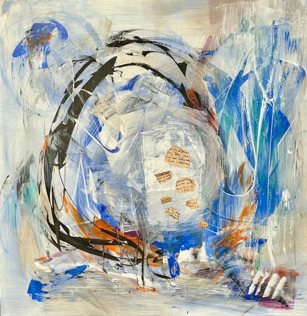 Nascono quegli orizzonti che, anch’essi capaci d’offrire definitive suggestioni, attraversano “Beyond Time” o gli spazi che vengono a separare altre forme circolari per indicarci che “Anything is possible” (entrambi 2026) o ancora, impercettibile, “Horizon of Hope”, dentro cui la speranza, nelle parole dell’artista, s’avvera quando “il vero viaggio è cambiare occhi e scoprire infiniti mondi negli sguardi degli altri”, nella certezza di fare prima o poi un “magico incontro”. Una certezza che, quasi in una spirale di ricordi, di memorie riaffiorate istante dopo istante, giunge nella piena ricerca di un “lost time”, entrando dal fondo della tela a testimoniare sagome umane, chiamando ancora in campo la speranza e gli affetti e gli esseri umani in “What really matters”, laddove una coppia convive in quel trionfo di blu a ricordare che “ogni giorno è un giorno perso se non abbiamo amato” e l’autrice a sottolineare “quanto conta davvero”. Nascono, sul filo sottile della memoria, forse con una rabbia appena accennata, forse con il rito tranquillo della definitiva dimenticanza, “Letters from the Past”, ancora entro un cerchio che questa volta è vortice quel che rimane di un amore scritto su un foglio di carta. Attraverso le emozioni, le suggestioni, i ricordi di un attimo, i costruttivi suggerimenti, il disordine del cuore, i pensieri che si si sovraccaricano, invadiamo altri campi, più personali, più profondi. E anche chi guarda, e fa proprie le opere, scopre l’importanza di una nuova “découverte”.