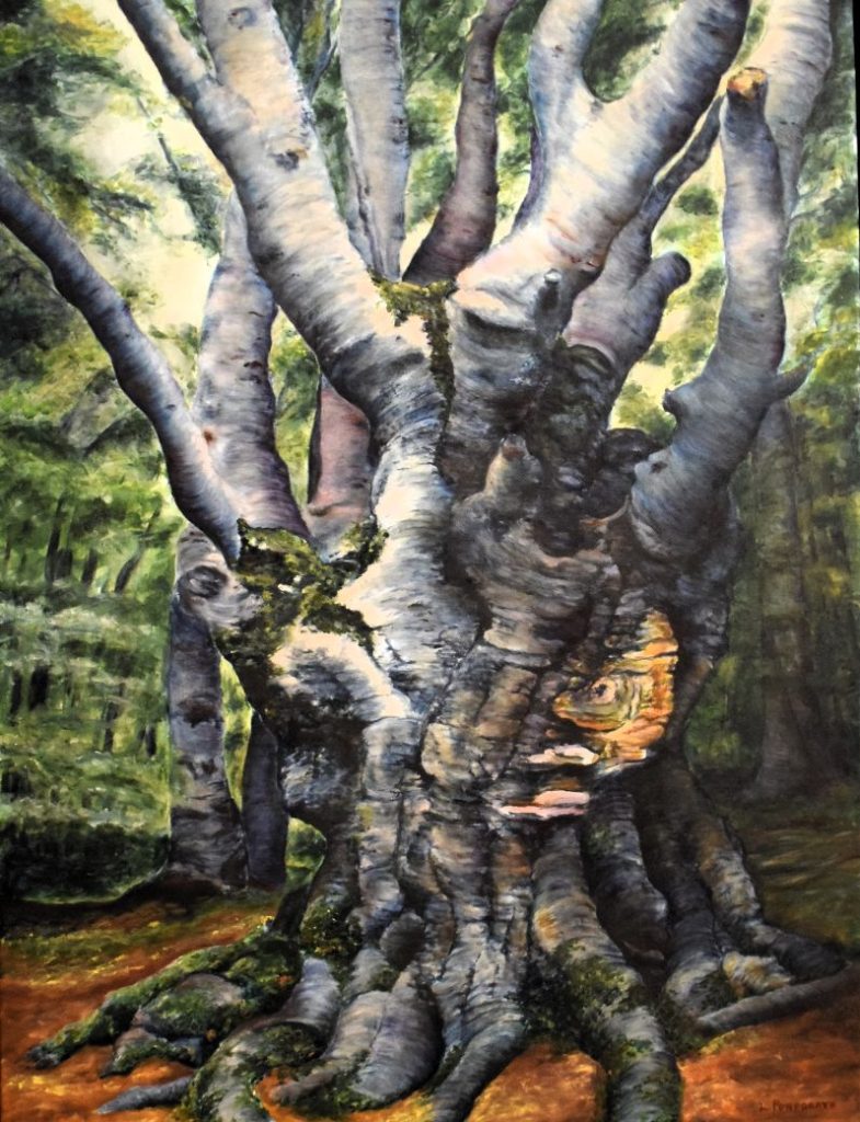 Straordinaria la prima, inattesa sensazione. E stupendo l’immediato colpo d’occhio. Il primo passo nella sala espositiva di quel prezioso gioiello d’arte che, in poco più di un decennio, è diventato (gran merito del direttore, Fratel Alfredo Centra e di preziosi collaboratori come i critici d’arte Donatella Taverna e Francesco De Caria) il “Collegio San Giuseppe” di via San Francesco da Paola, a Torino, ti dà l’idea subitanea di esserti gradevolmente lasciato alle spalle un qualcosa chiamato “frenetico vivere urbano”, per affacciarti e immergerti (o, meglio, lasciarti trascinare in una totale, distensiva immersione) in un universo “altro”, in meravigliose, insospettabili ed insospettate foreste, perfino un po’ inquietanti, dove ad accoglierti sono alberi, alberi … e ancora alberi. Di una potenza che beneficamente t’assale, carichi di secoli e secoli di storia, ardite “architetture verticali” che parlano “lingue” d’ogni parte del globo. Ulivi, il Ficus di Palermo ed esotici eucalipti e, ancora, possenti betulle, il “Pino marittimo” di Sanremo fino (per restare un po’ di più in casa) ai “Platini” di Cherasco: 18 oli e 6 disegni a grafite. Un non vasto campionario (mancano purtroppo le eccezionali incisioni alla “maniera nera à berceau”) raccolto in viaggi remoti per il mondo, ma sufficiente per testimoniare l’enorme passione (umana e artistica) di Luisa Porporato, torinese, laureata in Discipline Storico – Artistiche e perfezionamento all’“Accademia Albertina”, per quel millenario “mondo d’alberi”, simbolo di vita in perenne trasformazione, ma anche in perenne rinascita, in un costante reciproco ricercarsi, nel loro durevole complice abbracciarsi e nell’instancabile rivolgersi al cielo, le radici ben solide a terra.