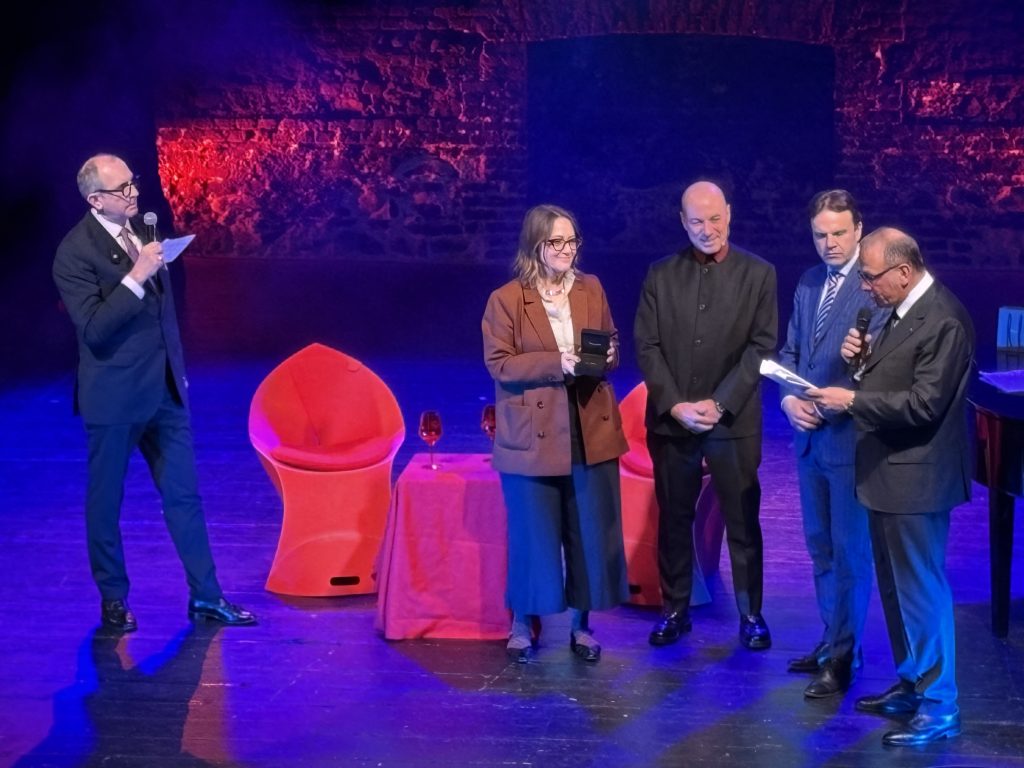 La serata è stata anche l’occasione per consegnare a Giuseppe Lavazza il “Gianduiotto d’Oro”, un riconoscimento che premia l’eccellenza rappresentata dall’ospite di “Enjoybook”.