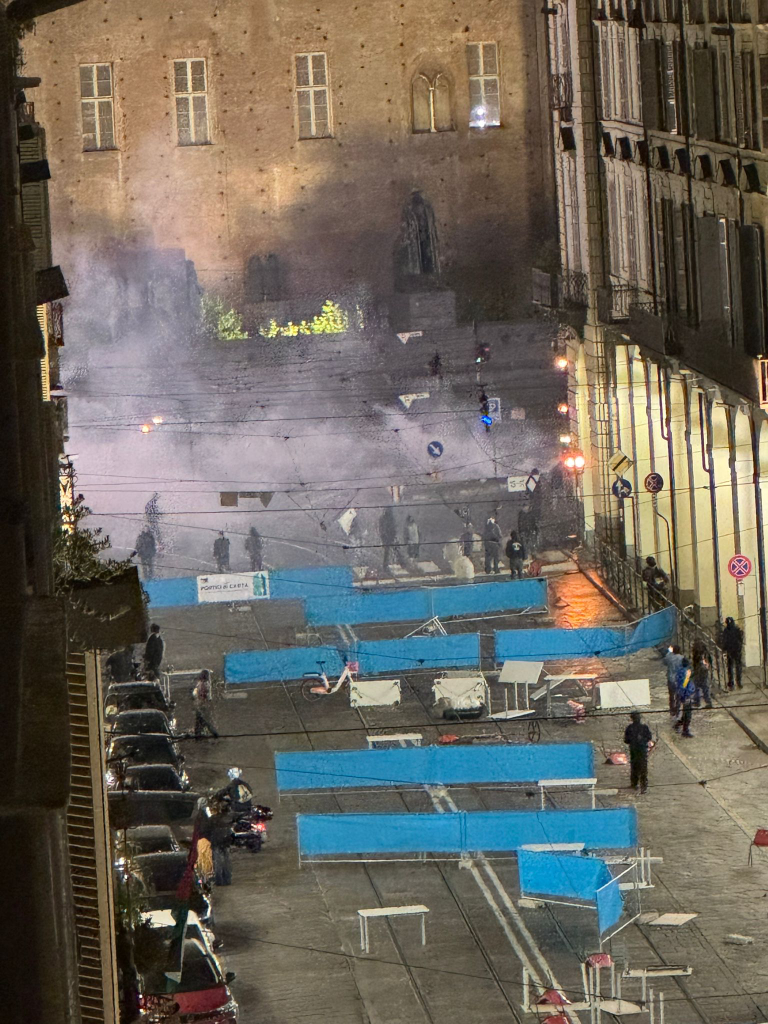 «Ciò che è accaduto a Torino in questi giorni è indegno per la nostra città. Questa notte, il lancio di pietre e transenne, il danneggiamento delle strutture già allestite per Portici di Carta in via Po, e il caos che ha costretto i baristi a barricarsi nei loro locali ci fanno dire che questa non è la nostra Torino!». Così la presidente di Ascom Confcommercio Torino e provincia, Maria Luisa Coppa, dopo la notte di vandalismi in piazza Castello e in via Po, dove una piccola parte del corteo ha divelto stand, bruciato sedie e danneggiato tavoli e allestimenti in strada e sotto i portici.