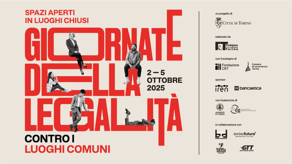 “Con la nuova edizione di Giornate della Legalità la cultura si fa ancora una volta strumento di crescita civile e democratica – dichiara l’assessora alla Cultura Rosanna Purchia –, aprendo spazi di confronto e di libertà e rafforzando, contrastando i pregiudizi e rafforzando il senso di comunità. La legalità arriva anche nelle piazze grazie a Portici della Legalità e al Bibliobus delle Biblioteche civiche, con la Biblioteca della Legalità BILL, restituendole la sua dimensione più autentica: quella di un bene comune che appartiene a tutte e tutti e che ognuno di noi è chiamato a custodire e a praticare”. Giornate della Legalità è un’iniziativa della Città di Torino, realizzata da Fondazione per la Cultura Torino, con il sostegno di Fondazione CRT e Camera di commercio Torino, sponsor Gruppo Iren e Banca Etica, con il patrocinio dell’Università di Torino e del Dipartimento di Giurisprudenza dell’Università di Torino, in collaborazione con Biennale Democrazia, Torino Futura, Turismo Torino e provincia e GTT.