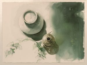 Nelle foto: Andreina Bertolini “Le due sorelle”, acquerello su tela”, 2025; Anna Maria Palumbo “Il gatto si affaccia”, olio su cartone telato, 2006; Fabio Cappelli “Personaggio improbabile 6”, tempera su carta, 2020; Lidia Delloste “Tazzone e lumino”, acquerello su carta, 2006; Gianni Sesia della Merla “Fuori le mura di Marrakesh”, tecnica mista, 1981