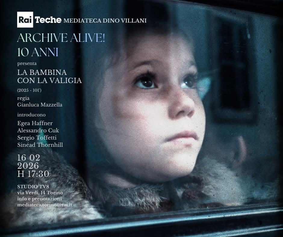“Raiteche “Archive Alive!”, la rassegna della Mediateca Rai “Dino Villani” di Torino che apre al pubblico le porte del suo prezioso archivio compie 10 anni. Un decennio di memoria collettiva grazie ai numerosi incontri con la visione di programmi, documentari, inchieste e e sceneggiati che hanno segnato un’epoca e fatto la storia della televisione italiana. Dopo il primo appuntamento del 2026 nel mese di gennaio, dedicato ad un gigante del teatro, il regista Luca Ronconi, martedì 16 febbraio, al Tv8 del Centro di Produzione Rai di Torino verrà proposto, in memoria delle vittime delle foibe e dell’esodo istriano, fiumano, giuliano e dalmata, il tv movie di Gianluca Mazzella “La Bambina con la valigia”.
