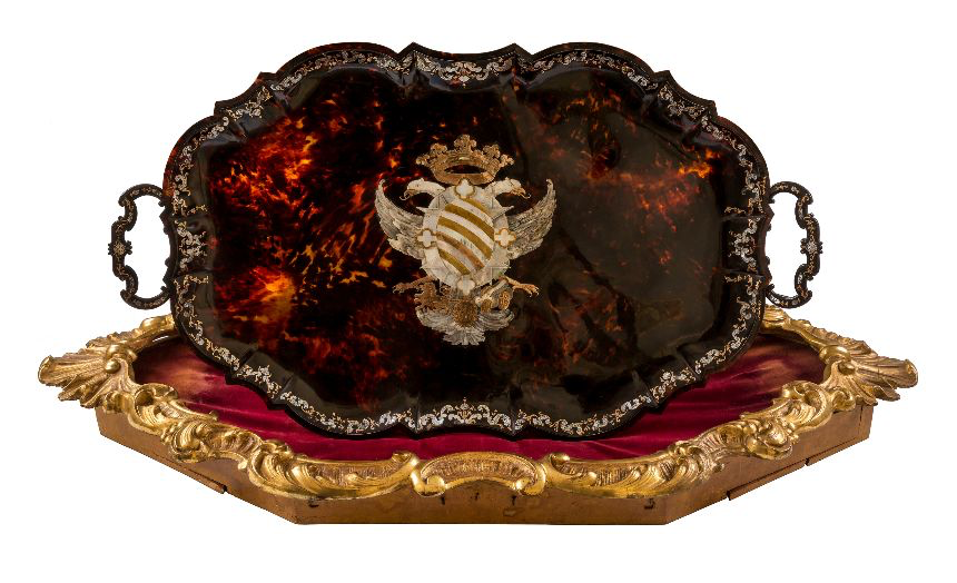 La corona non è l’unico esempio dentro fa mostra, attorno le sono esposti oggetti di arte decorativa napoletana già appartenenti alle collezioni del Museo Accorsi-Ometto: una coppia di doppieri (1775 – 1779) dovuti a Francesco Tomaselli, con inciso lo stemma di Simone Vincenzo Velluti Zati, duca di San Clemente, argento fuso, sbalzato e cesellato, “asimmetrici nella forma, documentano il persistere di soluzioni ornamentali rococò nelle case delle nobili famiglie napoletane, anche dopo l’avviarsi della felice stagione neoclassica.” Come assai prezioso – e davvero bellissimo: provi ognuno ad accendere la luce che lo retroillumina e si goda il raro cambiamento dell’oggetto – è il vassoio da parata in piquet tartarugato, che il papa (bolognese) Benedetto XIV Lambertini ordinò alle officine (campane) di Torre del Greco per farne dono al marchese (piemontese) Leopoldo Del Carretto di Gorzegno e di Moncrivello, che fu legato diplomatico in occasione del secondo concordato tra papato e Regno di Sardegna, un ampio carapace raddolcito e livellato con olio d’oliva e altri elementi, “un’opera che esprime l’altissimo livello qualitativo delle maestranze napoletane, educate fin dall’inizio del nuovo regno a comunicare la regalità e in grado di reggere il confronto con le migliori manifatture europee” nonché la rete che legava le lontane piccole e grandi corti come la scelta dei luoghi di lavoro, altrettanto lontani, ma ritenuti in quel momento tra i migliori. A raccontare il significato del Barocco da cui la sala prende nome, all’intorno nature morte e i ritratti e le immagini sacre, veri gioielli i tondi che illustrano tre “Scene della Passione di Cristo”, tra il 1760 e il ’70, in gesso e legno, dovuti a Giovanni Battista Bernero, saviglianese d’origine, assunto ben presto alla corte dei Savoia, attivo a Stupinigi come al Sacro Monte di Varallo, nel duomo di Casale Monferrato e di Carignano, a Torino nelle chiese di San Lorenzo e in San Francesco d’Assisi.