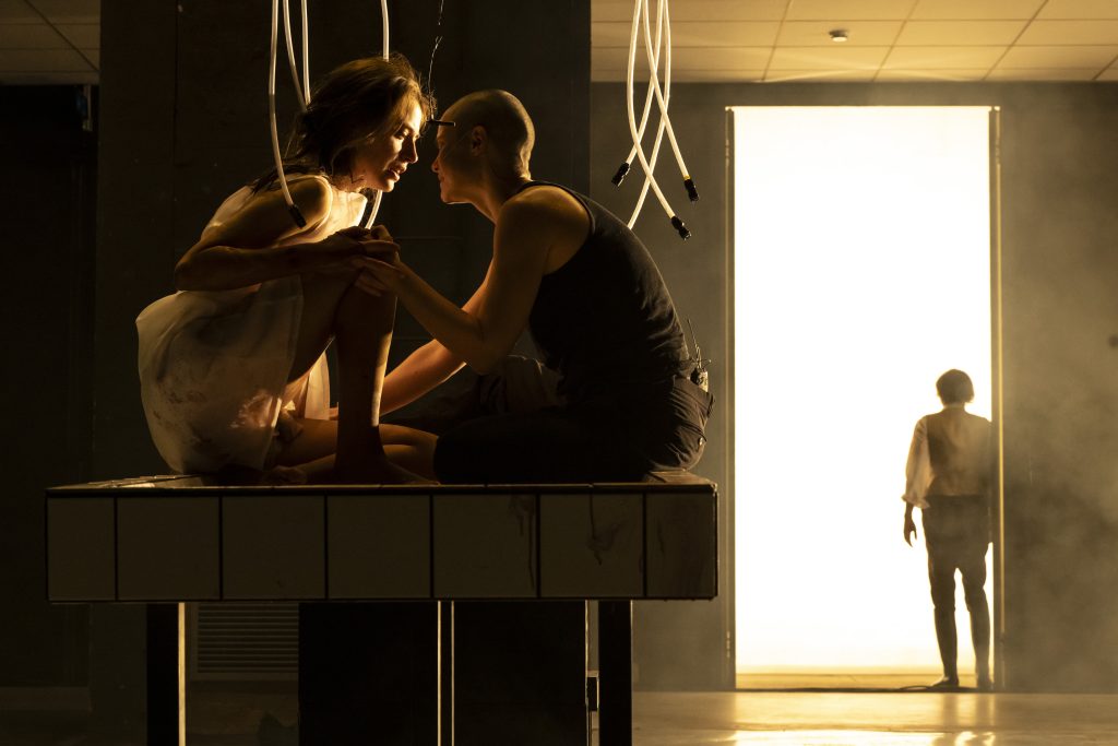 A introdurre gli spettatori nell’incubo è Marco Divsic, un Jonathan Harker timoroso e determinato, che entra in sala trascinando con sé la sua ricerca di Mina. La Mina di Chiara Ferrara è un’apparizione rarefatta, quasi sognata, che solo nel finale si rivela sorprendentemente terrena. Ma è la meravigliosa Federica Rosellini a imporsi con un Dracula prima mostruoso e poi terribilmente umano: una figura androgina, fragile nella sua condanna all’immortalità, che domina lo spazio con corpo e voce anche quando non è fisicamente presente. Accanto a loro, Michelangelo Dalisi e Michele Eburnea offrono prove solide che contribuiscono a tenere in equilibrio una drammaturgia densa e costruita per sottrazione.