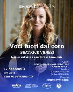 La splendida cornice del teatro Juvarra, a Torino, ospiterà giovedì 12 febbraio, alle ore 20.15, la seconda serata di “Voci fuori dal coro”, ciclo di sette appuntamenti organizzati da Enjoybook, che avrà come ospite il direttore d’orchestra Beatrice Venezi, che si racconterà al pubblico in un’atmosfera informale e coinvolgente, nel corso di una serata conviviale che non sarà soltanto ricca di emozioni, testimonianze e racconti autobiografici, ma costituirà anche un momento per gustare insieme un aperitivo accompagnato da un calice di bollicine. L’incontro con Beatrice Venezi sarà arricchito dalla presenza dell’avvocato Anna Maria Bernardini De Pace e dal produttore Cesare Rascel, figlio del noto attore e cantante Renato. Sarà un’occasione per conoscere meglio i protagonisti della serata in un contesto libero, dove la musica dal vivo creerà suggestioni e spunti per narrazioni personali, dalle passioni alle scelte di vita, dalle cadute alle rinascite, nella dimensione più autentica e senza filtri degli ospiti che si aprono a un confronto in un laboratorio di pensiero e sensibilità. Nel corso della serata, la band allieterà il pubblico con musica dal vivo in un viaggio coinvolgente tra le note, apprezzando il sottofondo musicale con il catering a disposizione.