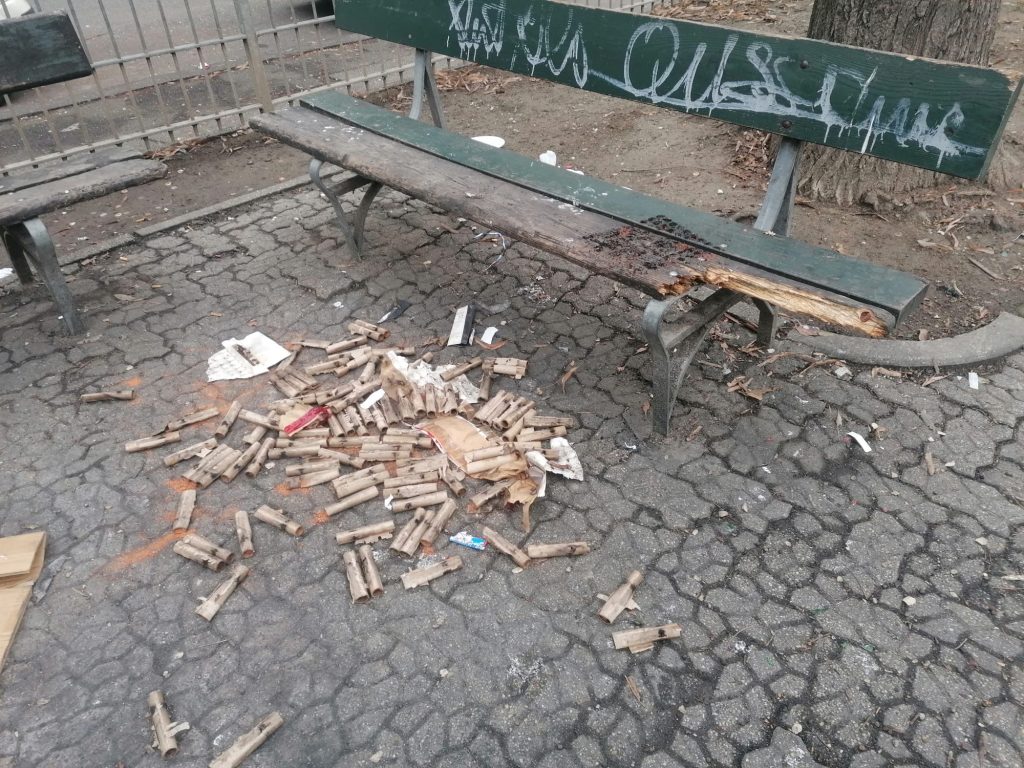 Le bande di ragazzi che “vivono” il Giardino Alimonda continuano oramai da tempo ad accendere il fuoco tra le panchine di legno e ieri sera anche fuochi d’artificio che hanno illuminato tutto il Giardino e vie limitrofe, i botti erano talmente forti che tremavano i vetri.