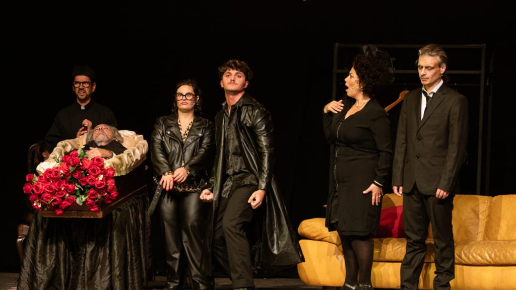 In estrema sintesi. La storia è quella, fantasiosa e visionaria, di un imprenditore che, arrivato alla soglia dei 50 anni, si rende conto di aver dedicato tutta la sua vita esclusivamente al lavoro a scapito di affetti e relazioni. Desideroso, quindi, di sapere cosa pensino realmente di lui parenti e amici, decide di inscenare il suo funerale. Una morte fittizia – amplificata da una singolare campagna di finti “necrologi” in cui potreste realmente imbattervi gironzolando in questi giorni per le strade di Torino – che diventa il pretesto per osservare, da “una posizione privilegiata”, le reazioni di parenti e amici in attesa dell’eredità. Ciò che ne scaturisce è un ritratto amaro e grottesco di una famiglia che, tra avidità, segreti inconfessabili e speranze mal riposte, rivela la propria vera natura davanti a un testamento ancora da leggere. Un doloroso, nella sua lapalissiana verità, ritorno alla vita per il nostro povero imprenditore. Parte di qui (vietato spoilerare altro) “Rosso – Diario di una morte annunciata”, il nuovo spettacolo della torinese “Compagnia delle Frottole” (realtà nata nell’ambito dell’Associazione “I Buffoni di Corte APS”), in programma giovedì 12 febbraio, alle 20,45, alle “Fonderie Limone” di via Pastrengo 88, a Moncalieri. Testo e regia di Luca Nicolino, che sottolinea: “Lo spettacolo usa l’ironia per raccontare come si possa arrivare a una vera morte interiore anche restando in vita: l’ansia, la depressione e la paura possono condurre, come accade sempre più spesso anche tra i giovani, a una forma di morte quotidiana”. Lo spettacolo, intelligente ed arguto, trasforma così un tema quanto mai delicato “in un’occasione di riflessione collettiva e vitale”.