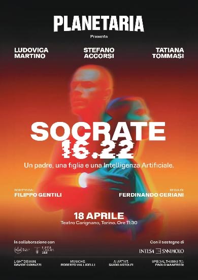Nell’elegante cornice del Teatro Carignano, all’interno della Biennale Tecnologia — manifestazione sempre più trasversale, capace di interrogare le sfide del futuro anche attraverso il linguaggio dello spettacolo e dell’arte — stamattina la sala gremita e un pubblico caloroso hanno accolto Stefano Accorsi, protagonista di “Socrate 16.22”, affiancato in scena da Ludovica Martino e dalla studiosa Tatiana Tommasi. Lo spettacolo, scritto da Filippo Gentili e diretto da Ferdinando Ceriani, si inserisce pienamente nel dialogo tra teatro e innovazione promosso dalla rassegna.