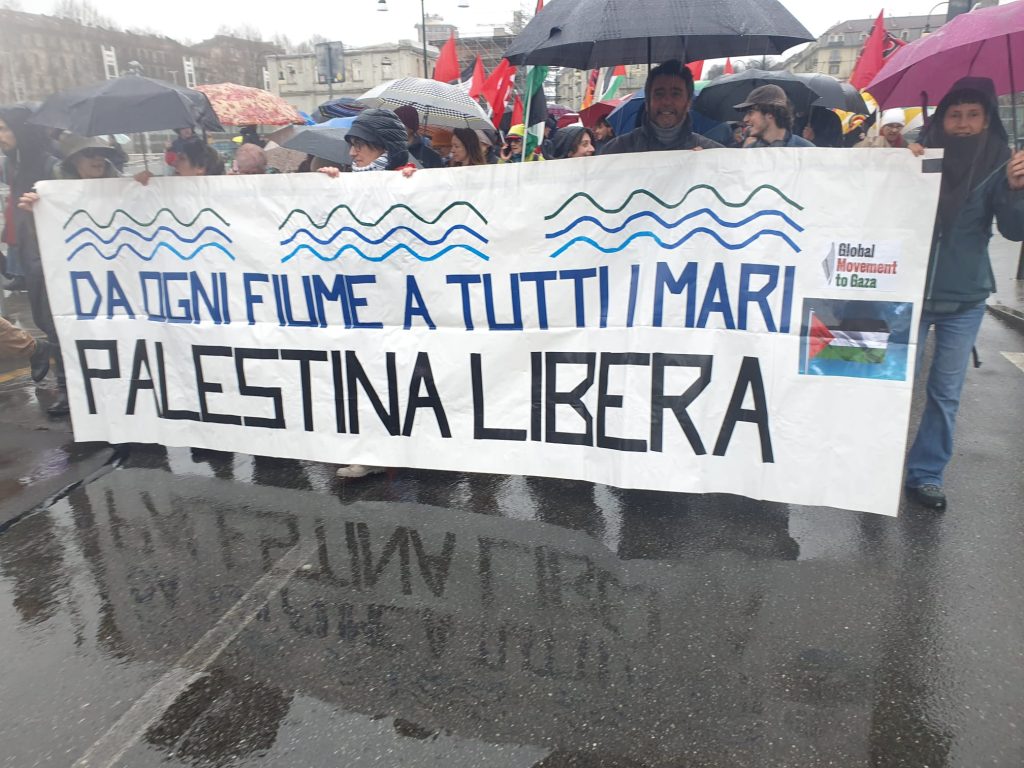 Nel pomeriggio di oggi, sabato 14 marzo, è in corso nel centro di Torino una manifestazione a sostegno della Palestina. Il corteo è partito intorno alle 14:30 da piazza XVIII Dicembre, vicino alla stazione di Porta Susa, e si dirige verso piazza Vittorio Veneto attraversando alcune vie centrali. Numerosi gli agenti in tenuta antisommossa lungo il percorso.