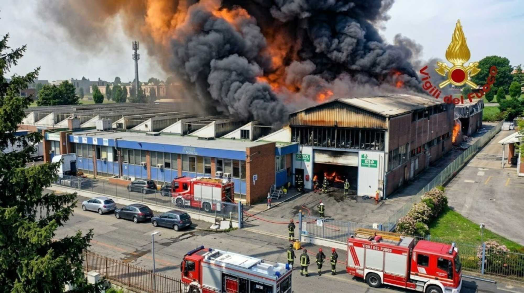 Numerose squadre dei vigili del fuoco stanno cercando di spegnere il rogo divampato per cause da accertare nelle scorse ore alla Speed Trasporti di Beinasco. All’interno stanno andando in fiamme gli automezzi. Alcune case sono state evacuate e il sindaco chiede ai cittadini di non aprire le finestre. La colonna di Como sprigionatasi e’ visibile da Torino.