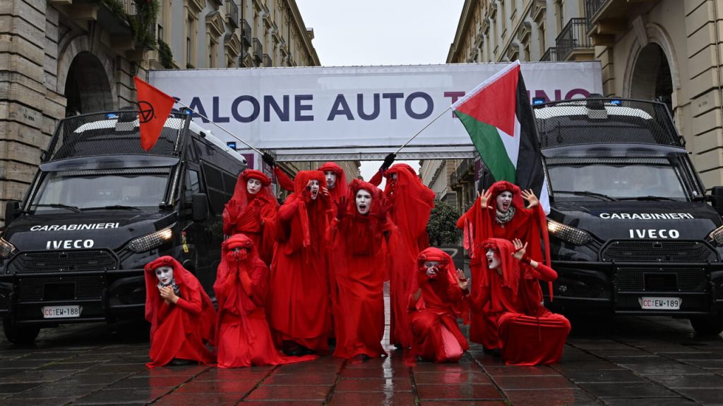 Le Red Rebels di Extinction Rebellion hanno interrotto l’inaugurazione del Salone dell’Auto
