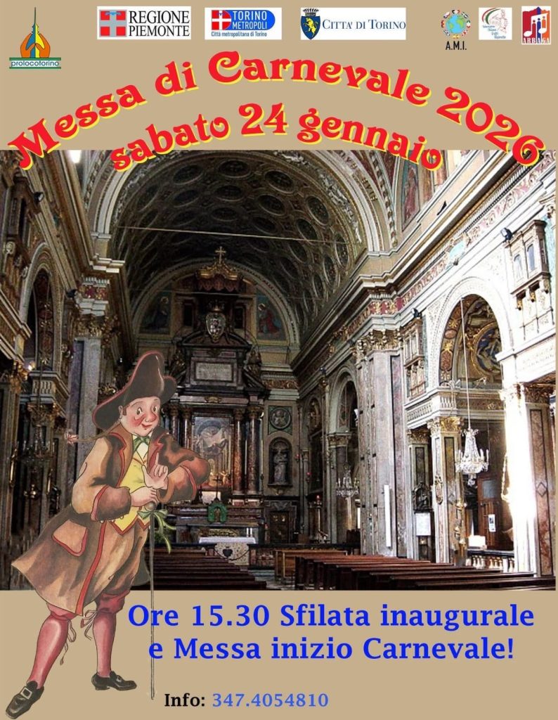 Ad accompagnarli come sempre ci saranno la Banda e le Majorettes sul percorso Palazzo di Città, via Garibaldi, piazza Castello, via Roma, piazza Carignano e con ritorno in piazza Palazzo di Città. Alle 18,30 la Messa di Carnevale in ricordo di Andrea Flamini, il grande Gianduja storico di Torino dell’Associassion Piemonteisa ed Aldo Rocchietti March che gli era succeduto.