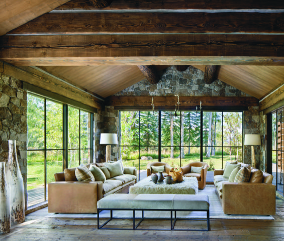 Le caratteristiche principali sono travi in legno a vista, pavimenti in pietra o parquet importante, camini, superfici materiche. Gli arredi mescolano elementi artigianali e pezzi più moderni, creando un equilibrio tra tradizione e comfort attuale.
