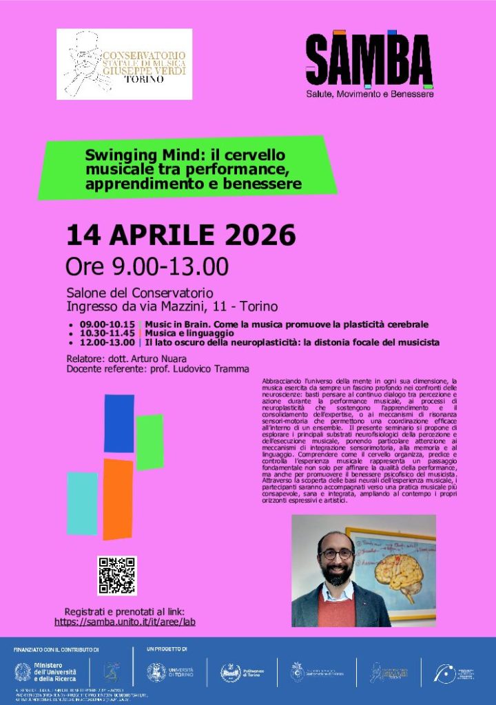 Il presente seminario si propone di esplorare i principali substrati neurofisiologici della percezione e dell’esecuzione musicale, ponendo particolare attenzione ai meccanismi di integrazione sensorimotoria, alla memoria e al linguaggio. Comprendere come il cervello organizza, predice e controlla l’esperienza musicale rappresenta un passaggio fondamentale non solo per affinare la qualità della performance, ma anche per promuovere il benessere psicofisico del musicista.