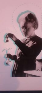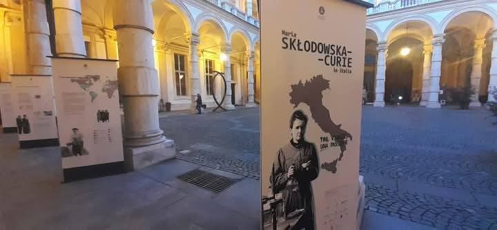 Si tratta della ricostruzione divisa in pannelli delle tre visite in Italia, nel 1911, nel 1918 e nel 1931, della scienziata doppio Premio Nobel, Marie Curie.