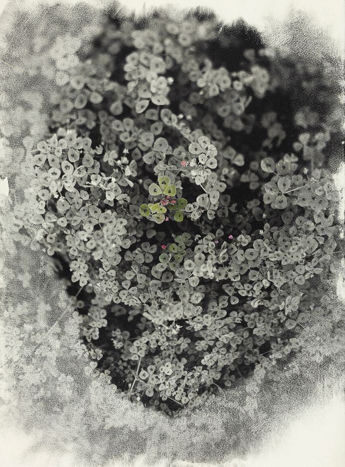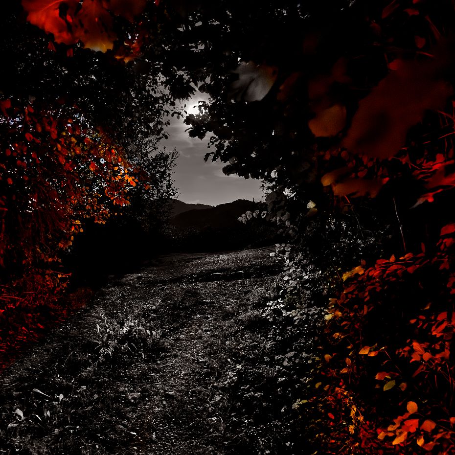 Dove sono questi “frammenti”? Sono nella presenza di porpora di Eleonora Olivetti, l’aspetto soffice di due piume messo a confronto con la solidità di un sasso (“Vola nel vento”, 2007, stampa ai pigmenti Fine Art su carta di cotone: “Vola nel respiro del vento/ un lieve sogno di porpora”, recitano i versi di Tiziana Avico che accompagnano il monocromo dell’autrice che non sarà mai “innocente registrazione”, e così sarà per il resto dei suoi compagni) o le luci di New York (1973), eguali continue fitte, con il loro brevissimo accenno di un’interferenza giallognola; sono nei “Colori del verde 2”, del 2013 (stampa ai sali d’argento su carta acquerello), autore Roberto Goffi, dove i “minimi interventi con colori all’anilina” interrompono di un pallido verde il ricamo grigio di un angolo di minuscola erba. Sono nelle creature che abitano i mari delle Maldive, screziandoli nelle opere di Maria Paola Soffiantino, tra l’azzurro e il rossiccio, presenze mai ingombranti nella piena tranquillità di quel profondo (“Nel profondo degli abissi/ il mio sguardo si perde in meraviglie./ Qui, tra giardini incantati,/ passeggia tranquillo un pesce azzurrino;/ più in là, danza un giglio di mare,/ vestito con sfarzo di porpora e blu”, ancora Tiziana Avico); sono il sorprendente riflettersi delle ombre “della luce” di Maria Erovereti, sono nei tenui scorci di una goccia azzurrina che tenta di afferrare il proprio spazio animato sulla superficie d’una foglia o il sentiero che avanza sotto le luci rossastre e irreali del fogliame che per un tratto lo allinea, in un suggestivo alternarsi, pronto a supportare qualsiasi favola, fiduciosa solitudine, ombre e nitidi dettagli, la luce di una prepotente luna dall’alto, che sono opera di Lorenzo Avico.