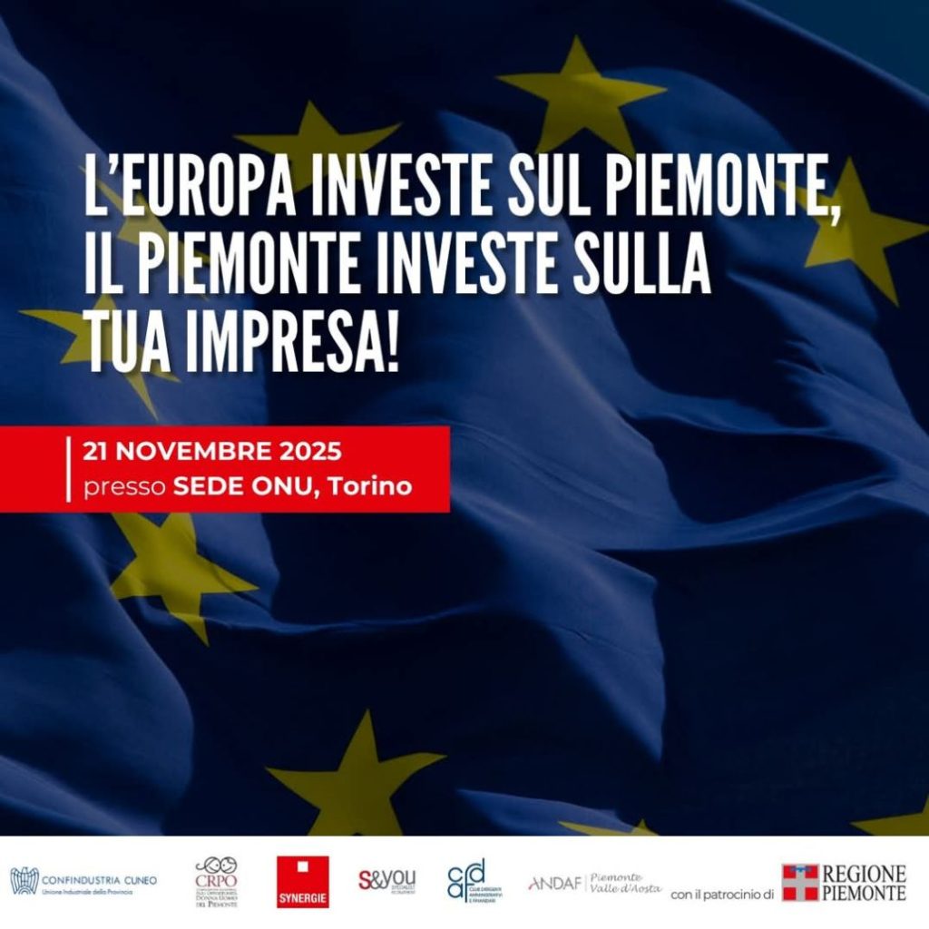 In sintesi, l’evento, realizzato in collaborazione con Confindustria Cuneo, Commissione Pari Opportunità Donna Uomo del Piemonte, ANDAF Piemonte e Valle d’Aosta e CDAF, ha rappresentato un’importante occasione di confronto tra istituzioni, aziende e attori economici del territorio sulle politiche e sugli strumenti a sostegno dello sviluppo piemontese. Sono intervenuti: Andrea Tronzano, Assessore regionale al Bilancio, allo Sviluppo delle Attività Produttive e all’Internazionalizzazione; Giuliana Fenu, Direttore per la Competitività del Sistema Regionale – Regione Piemonte; Paolo Furno, Dirigente Regione Piemonte; Marcella Mauro, Presidente ANDAF Piemonte e Valle d’Aosta – Associazione Nazionale Direttori Finanziari; Luisa La Vecchia, Regional Key Account Manager Synergie Italia; e Simona Tansini, Chief Commercial Officer Synergie Italia. Ha moderato l’incontro la giornalista Simona De Ciero.